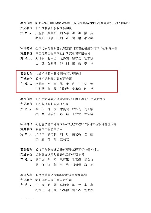 近日,湖北省工程咨询协会网站上公示2019年湖北省工程咨询协会优秀工程咨询成果奖获奖项目名单的结果。我公司喜获优秀工程咨询成果奖,由我公司申报的《枝城洋溪临港物流园港区发展规划》项目荣获优秀成果奖一等奖。