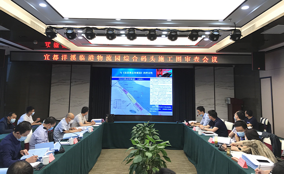 2020年5月20日,《宜昌港宜都港区洋溪临港物流园综合码头工程施工图设计》评审会在宜昌召开,与会专家和单位代表听取了我公司对《施工图设计》的汇报及技术审查咨询单位对审查意见的介绍,对《施工图设计》进行了认真审议,认为《施工图设计》的内容和深度基本符合国家和交通运输部有关规定的要求,《施工图设计》提出的装卸工艺方案、总平面布置方案、装卸工艺方案及水工建筑物基本合理。